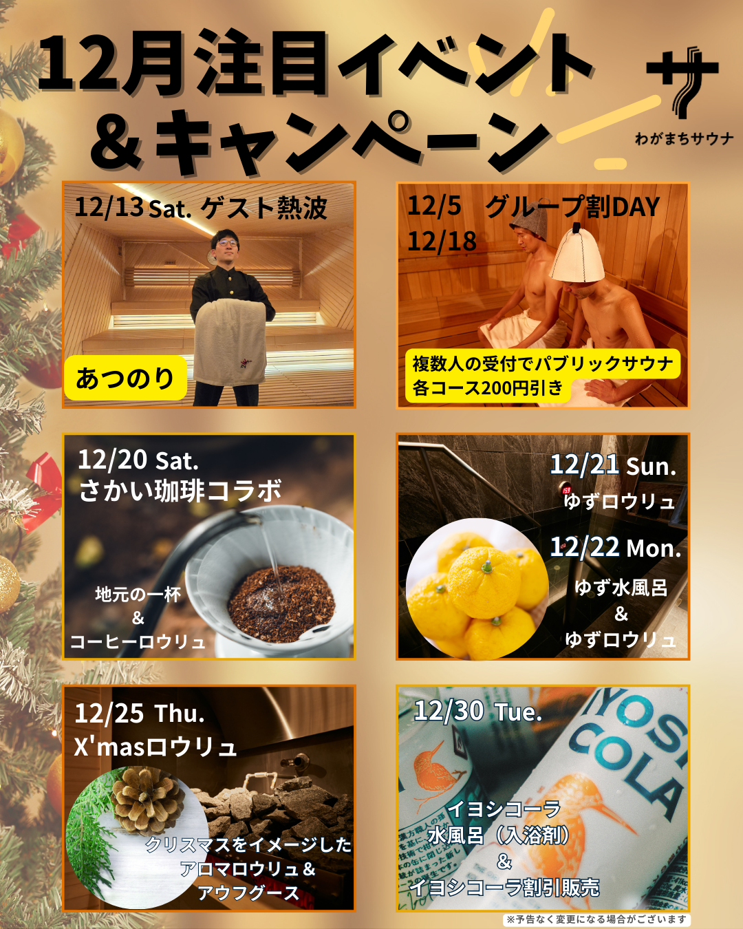 2025年12月の注目イベント&キャンペーン情報をお知らせいたします。