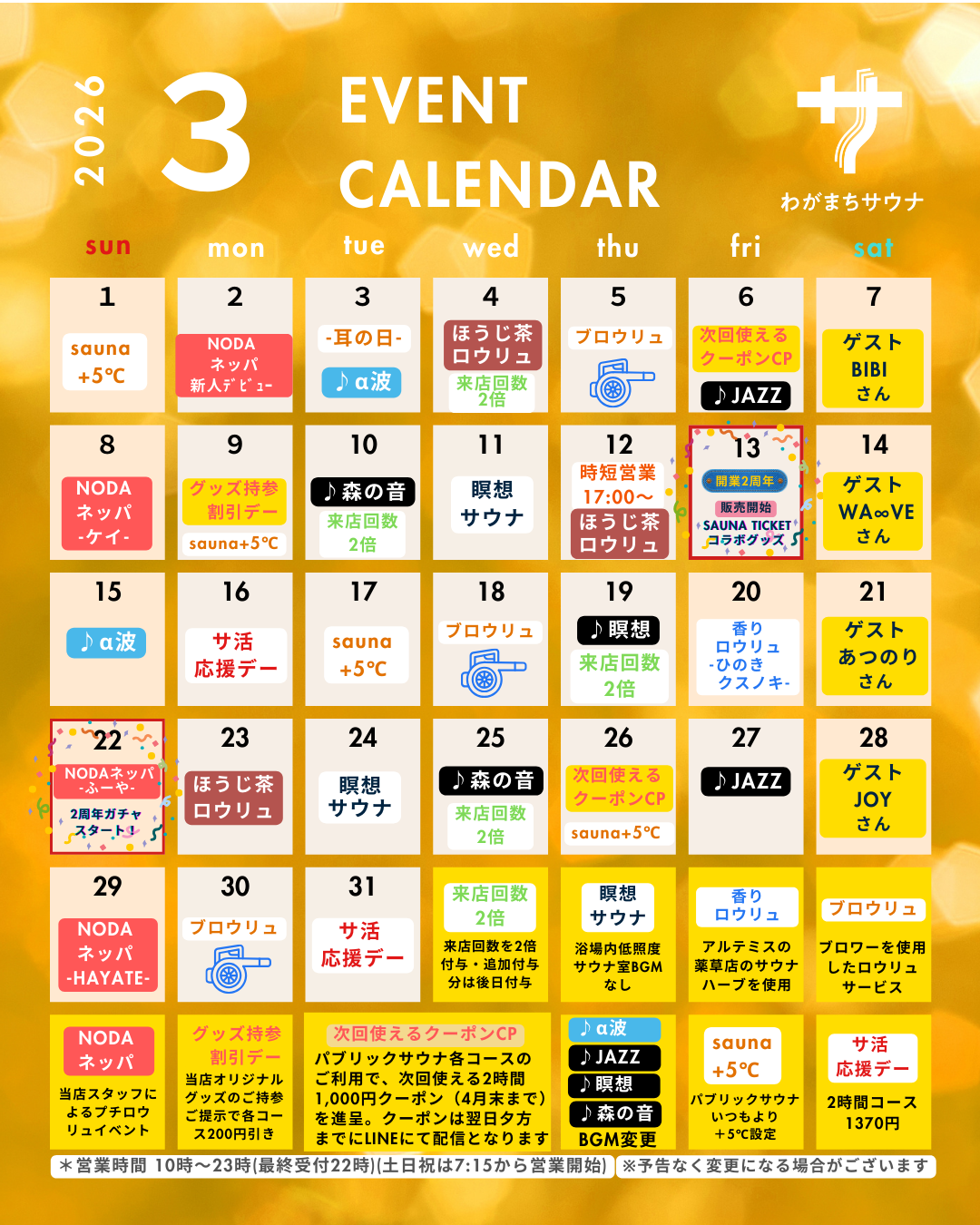 【開業2周年】2026年3月イベントカレンダー