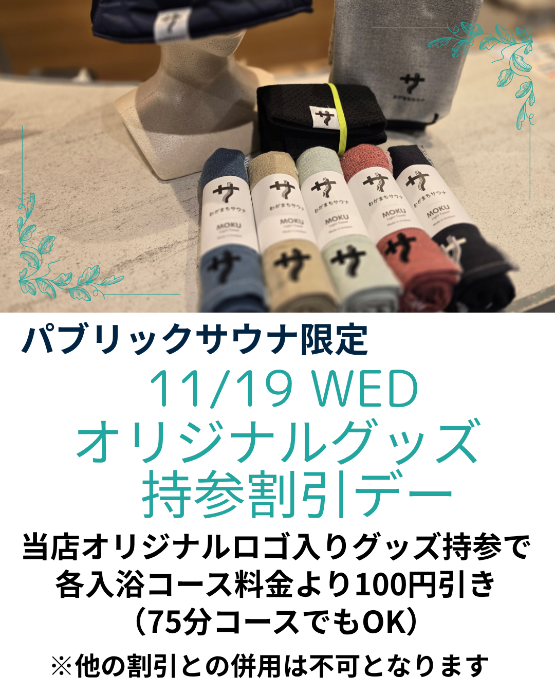 【11/19(水)開催】オリジナルグッズ持参割引デーのお知らせ