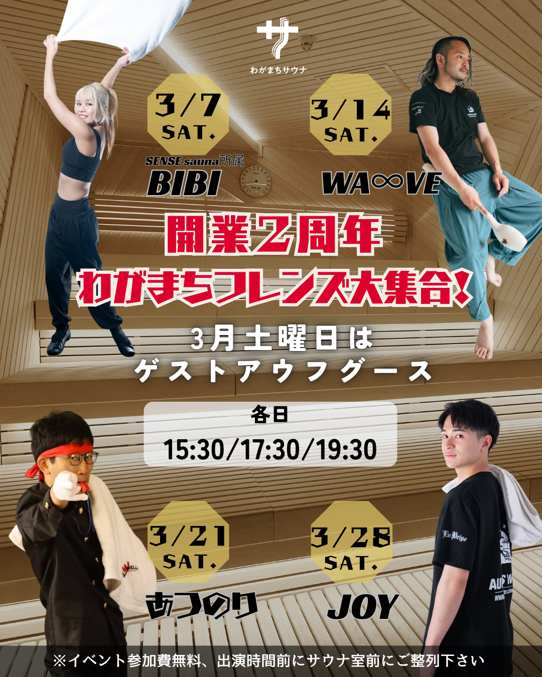3月は毎週土曜日に特別なゲストアウフグースを開催いたします。