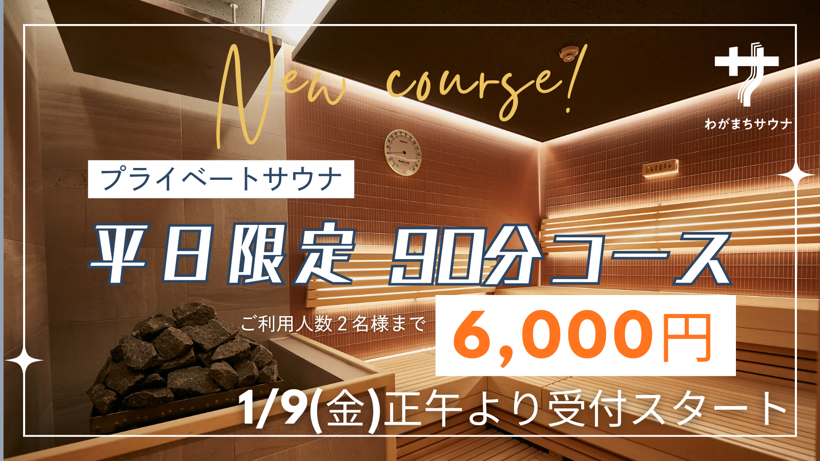 【お知らせ】平日限定「90分コース」開始&新サービス導入のお知らせ(プライベートサウナ)