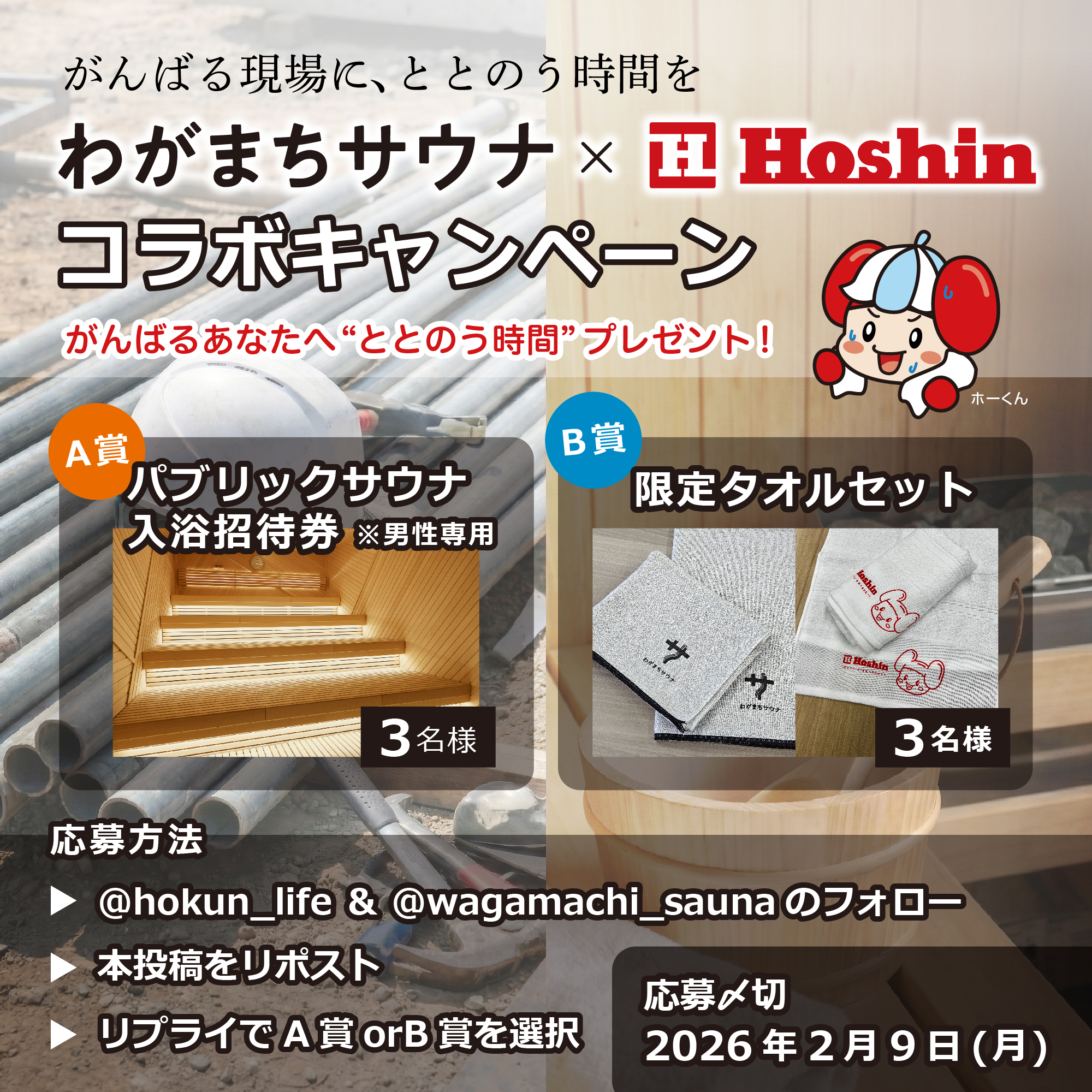 ホーシン公式X、およびわがまちサウナ公式Xアカウントをフォロー